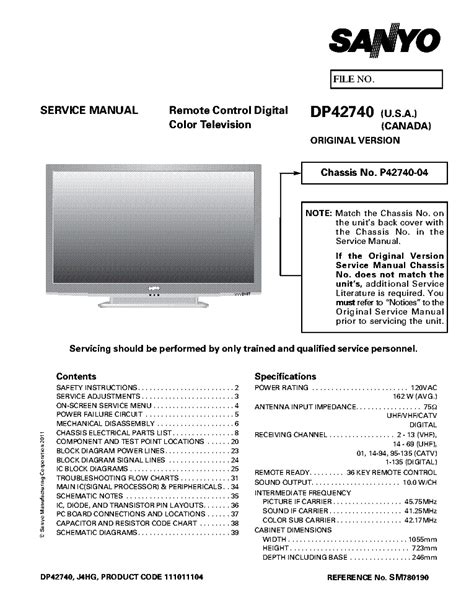 Read Online SANYO DP42740 SERVICE MANUAL PDF Gutenberg